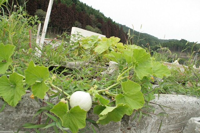 流されてしまった町立保育園の門前に、スイカが成っていた。