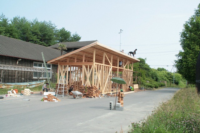 7日間で建ててしまわなければならないので、急ピッチで作業をすすめているとのこと。